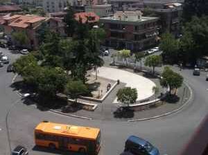 No recuerdo el año, mi esposa me lo ha contado pero no lo recuerdo, un rayo de esperanza se abre en Setteville. Por fin las madres pueden salir con los niños a la calle a un lugar sin coches. Setteville va a tener su propia plaza, por fin, delante de la Iglesia que está ubicada en los bajos de una especie de nave industrial, en el “centro” del barrio. La plaza la paga el Comune de Guidonia pero se la deben al Beato Juan Pablo II que, en un encomiable esfuerzo, había decidido, costara lo que costara, visitar como Obispo de Roma todas las parroquias de su diócesis. El Comune, para maquillar un poco la zona, asfalta una rotonda en frente de la Iglesia y pone cuatro bancos y una fuente. No es mucho, pero el hecho de que un político italiano se gaste dinero en una plaza para un barrio de trabajadores de clase media-baja seguro que es otro milagro que podemos atribuir al Beato.